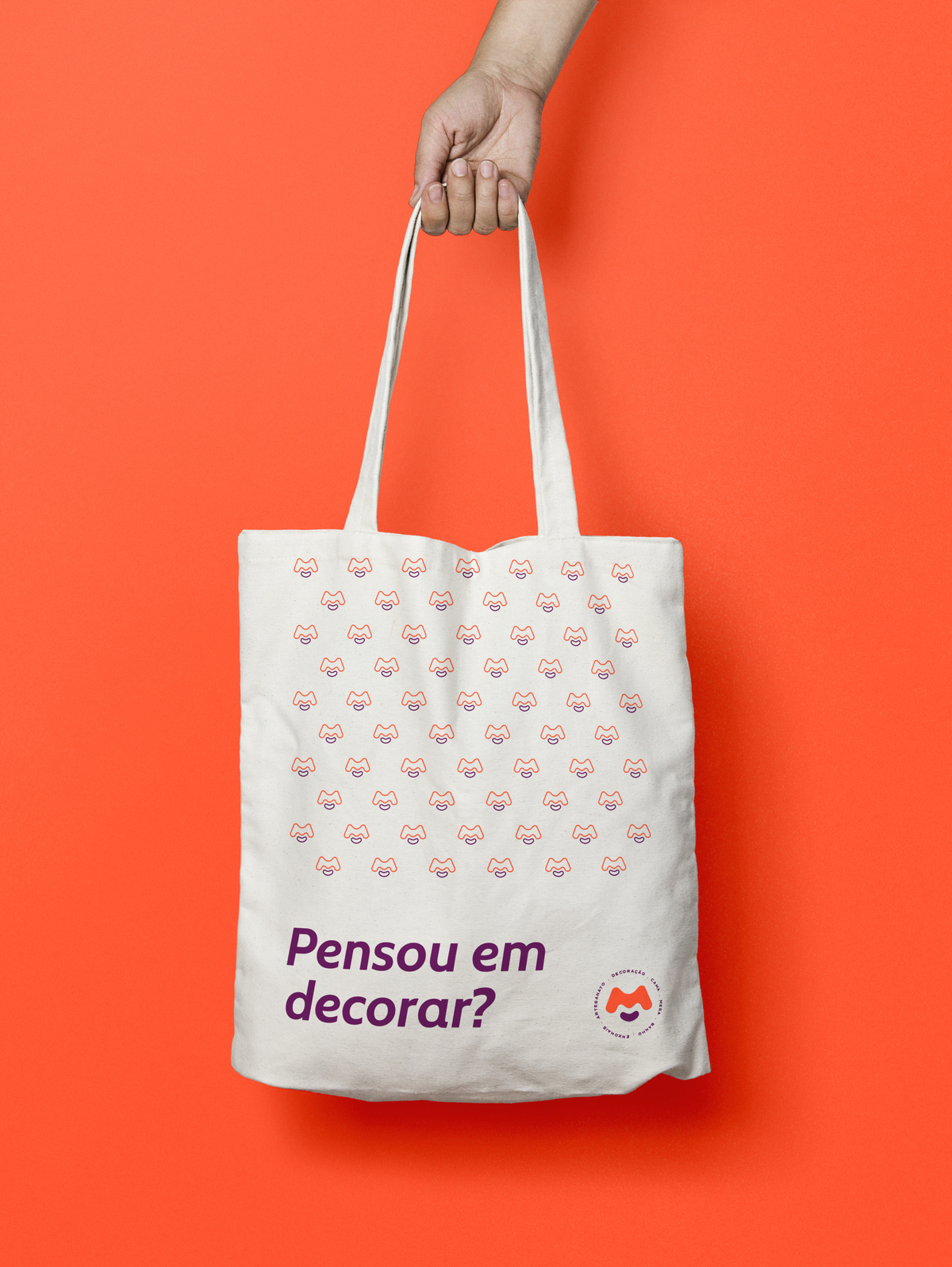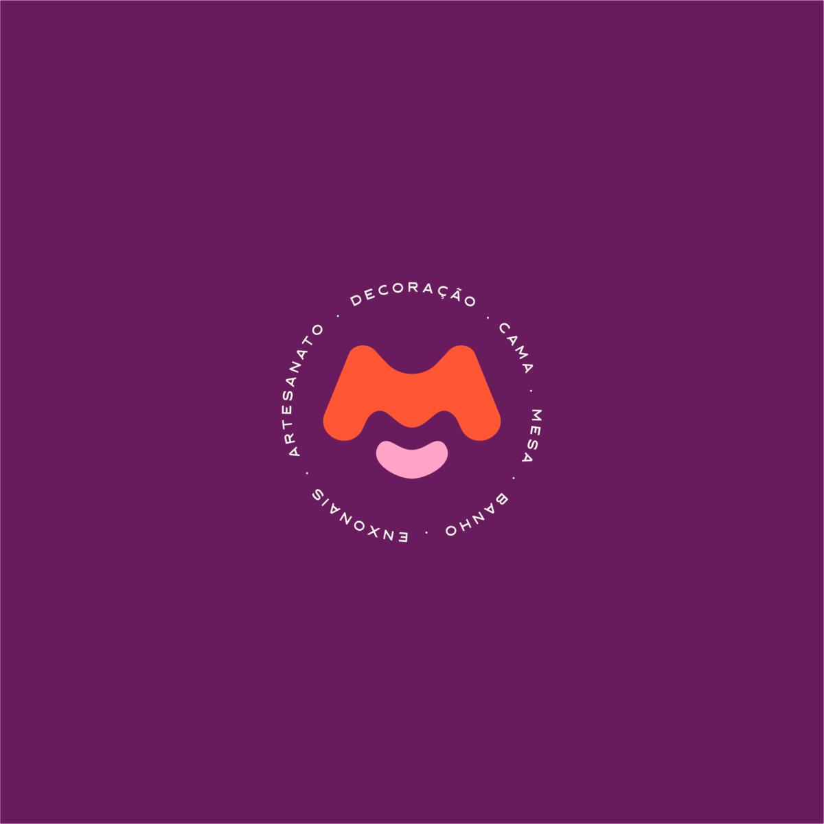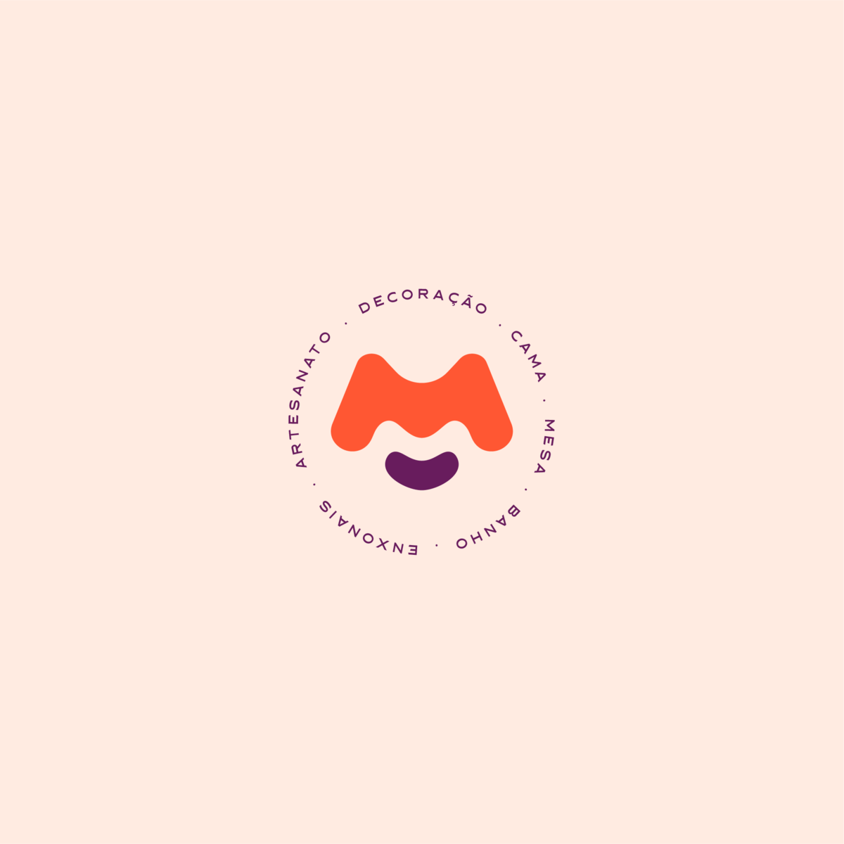 Para a construção do símbolo, com o objetivo de torná-lo um elemento forte e importante para a marca, desenhei um “M” orgânico, com traços macios e arredondados, representando conforto, aconchego, que é algo que está bastante atrelado à marca e ao que ela promete. O símbolo ainda conta com um elemento ovalado na sua base, dando uma ideia de encaixe e composição, de algo que se completa, fazendo alusão à atuação da marca no segmento de decoração e artigos de interiores. E a cereja do bolo: o símbolo é tão convidativo, que ele praticamente sorri pra você, o que traz um toque humanizado para o design da marca.