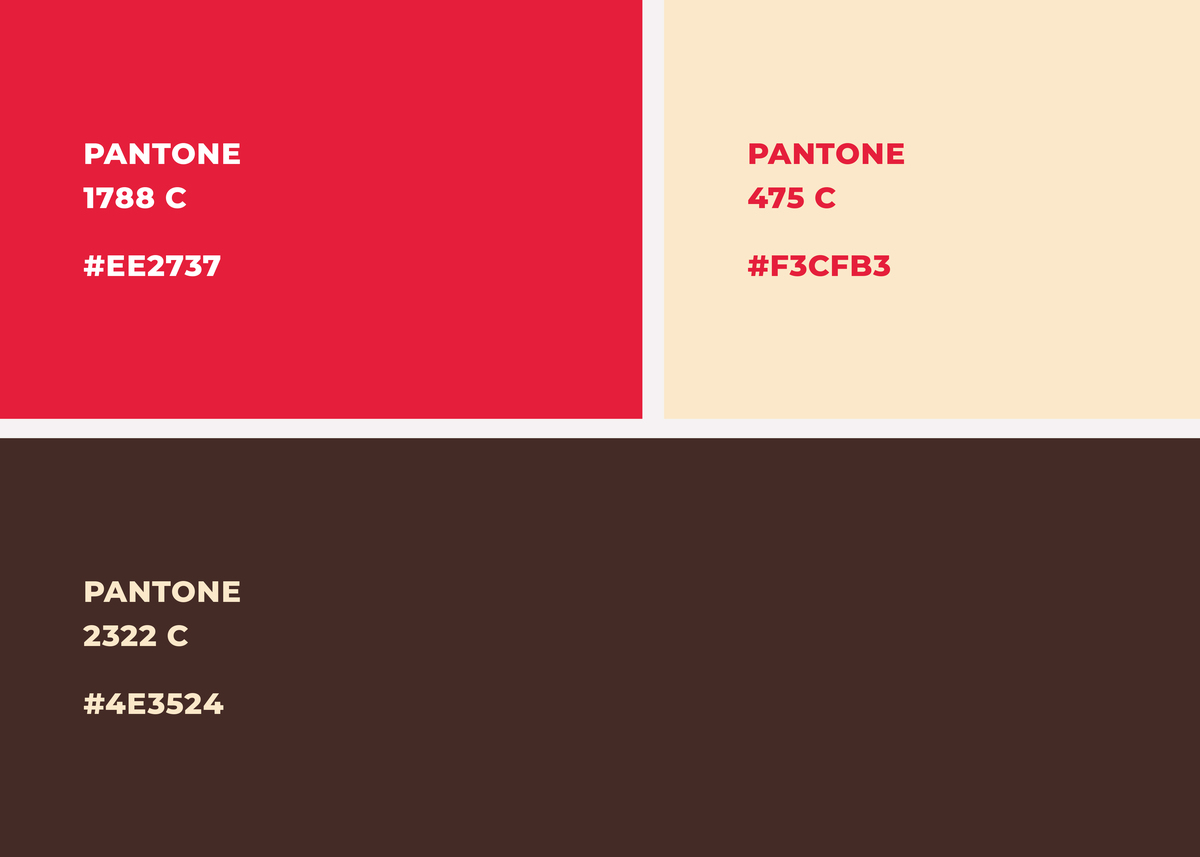 Para a escolha da paleta de cor da marca foi levado em consideração 3 fatores: segmento (alimentício), carro-chefe (doces) e uma cor que tivesse a função de ser o equilíbrio dessa balança. Sendo assim, a presença do vermelho como cor principal da marca teve como foco o segmento em que ela está inserida, além de ser uma cor quente e estimulante dentro da alimentação, e também por ter sido um ponto relevante que notei e extrai do briefing feito pelo Leonardo, o proprietário da marca. No entanto, trouxemos um tom de vermelho mais leve, mais diferenciado, fugindo um pouco do vermelho sangue que é habitual de se ver por aí.